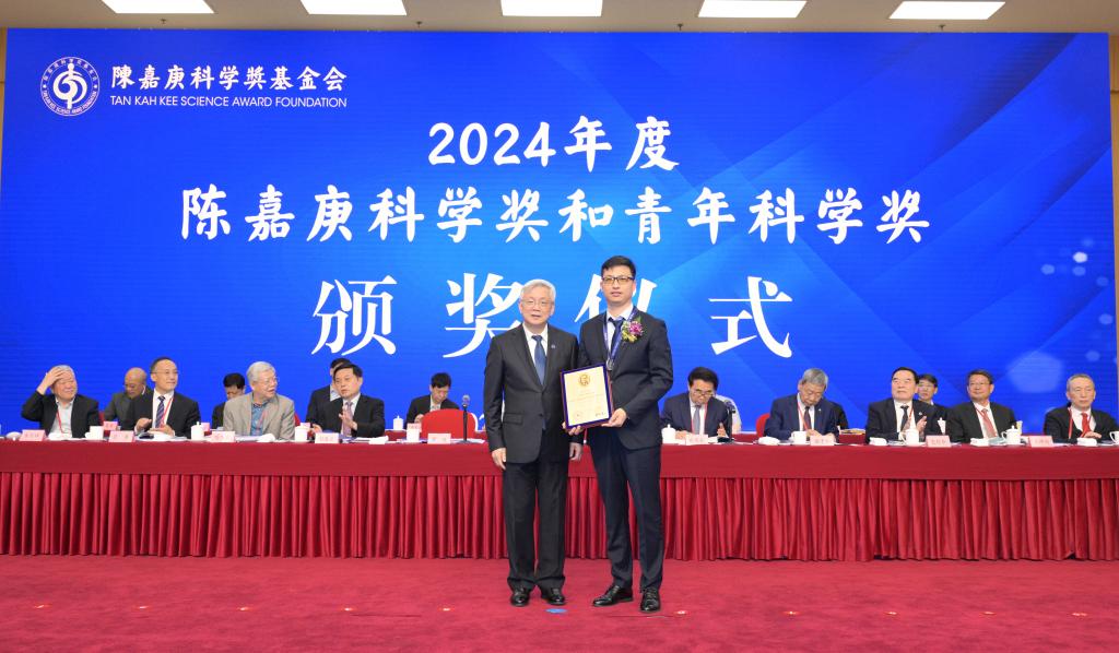颁奖仪式现场(右一为陈嘉庚青年科学奖获奖者赵智胜)