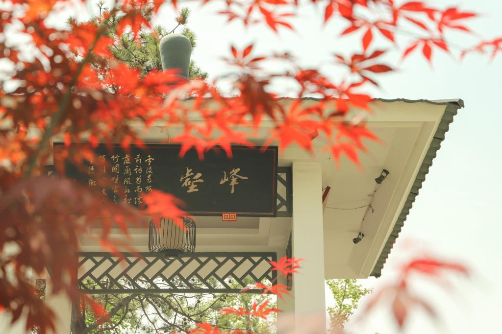 枝头曳叶盈,透光绘影,鸟鹊音嘤咛。满园芬芳,欲采几许遗远方。红叶展了醉颜,倾语共话秋闲。古韵琴音,一声入耳,万事离心。不怕夕阳迟暮,青色石板路旁,看花开花落水波不惊。