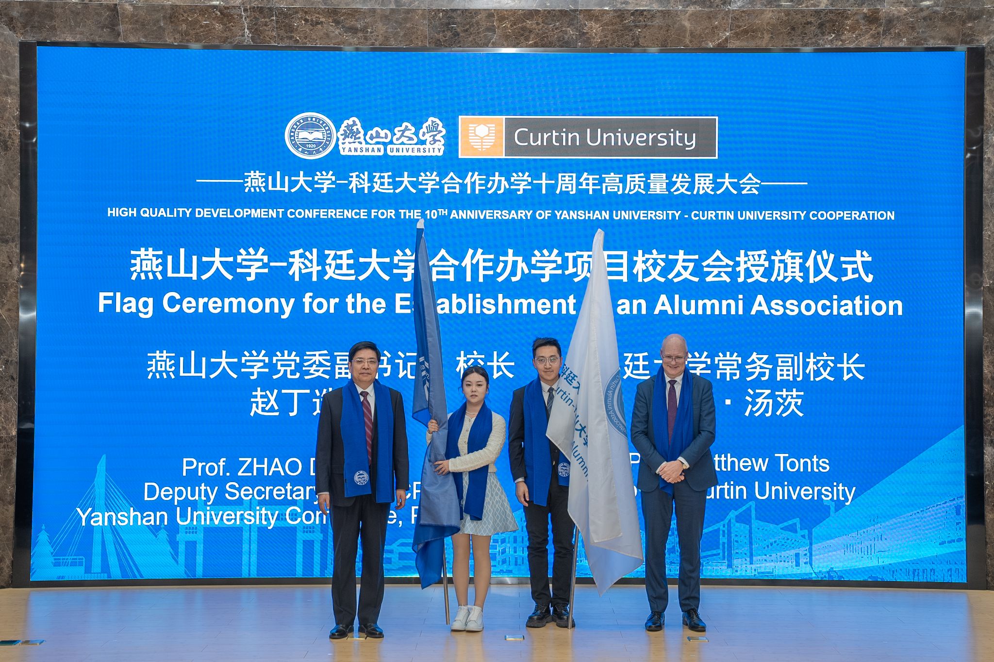 -科廷大学合作办学项目校友会正式成立,赵丁选和马修•汤茨(Matthew Tonts)共同为校友代表授旗。象征着两校在新的起点上携手同心,双方合作将迈入更加深入、广泛的新阶段,共同书写更加辉煌的新篇章。